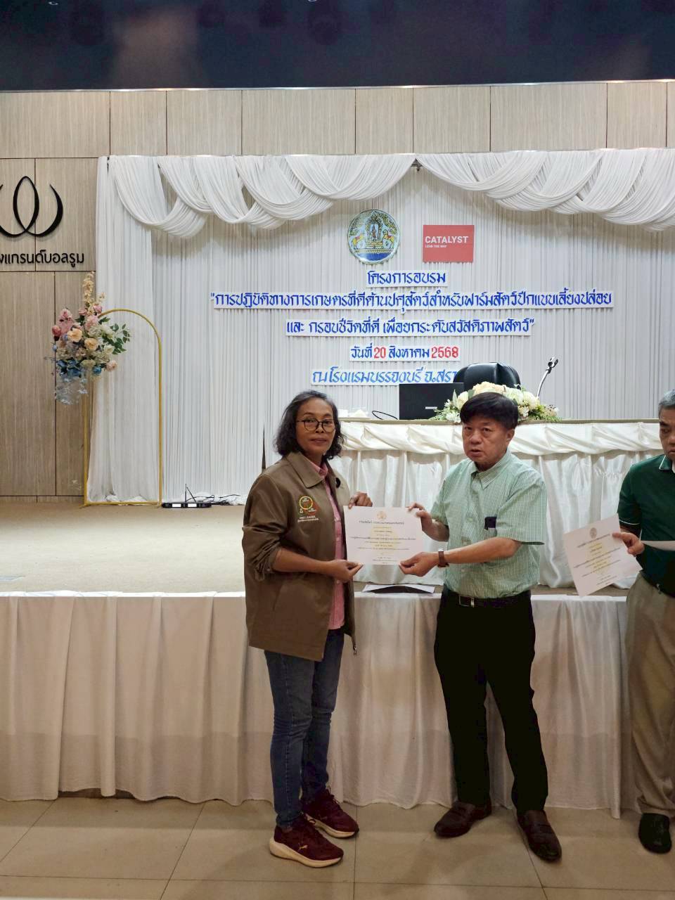 เข้าร่วมอบรมในหัวข้อ "การปฏิบัติทางการเกษตรที่ดีด้านปศุสัตว์สำหรับฟาร์มสัตว์ปีกแบบเลี้ยงปล่อย และกรอบชีวิตที่ดี (Good Life Framework) เพื่อยกระดับสวัสดิภาพสัตว์"